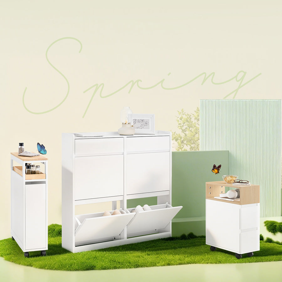 Prévente | SoBuy | Meuble à chaussures étroit à 2 abattants | Blanc | FSR177-W